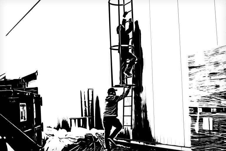 Du stehst an der Leiter. Tommy und Antonia sind dicht neben dir. Die Leiter sieht zwar schon leicht rostig aus, aber dank des Korbes, welcher die Leiter umgibt, sollte nichts passieren. Es gilt, keine Zeit zu verlieren. Schnell hoch, bevor noch jemand auftaucht, denkst du dir, wĂ€hrend du dich die Sprossen hochziehst. Oben angekommen, hilfst du den beiden anderen hinauf. Das Dach ist recht unspektakulĂ€r. Einzig ein kleines BlechhĂ€uschen ist zu sehen. Dies muss der Eingang zum GebĂ€ude sein. Du machst dich auf den Weg, gefolgt von den beiden. Tommy versucht sein GlĂŒck und zieht an der TĂŒr. Sie ist verschlossen. Damit war zu rechnen.